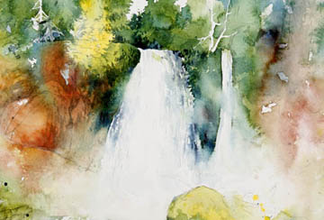 around upper fall. Use the #2 to apply light Blue around the yellowish tree.
