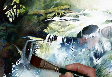 use the #4 to paint short and thin strokes to suggest water movement in light